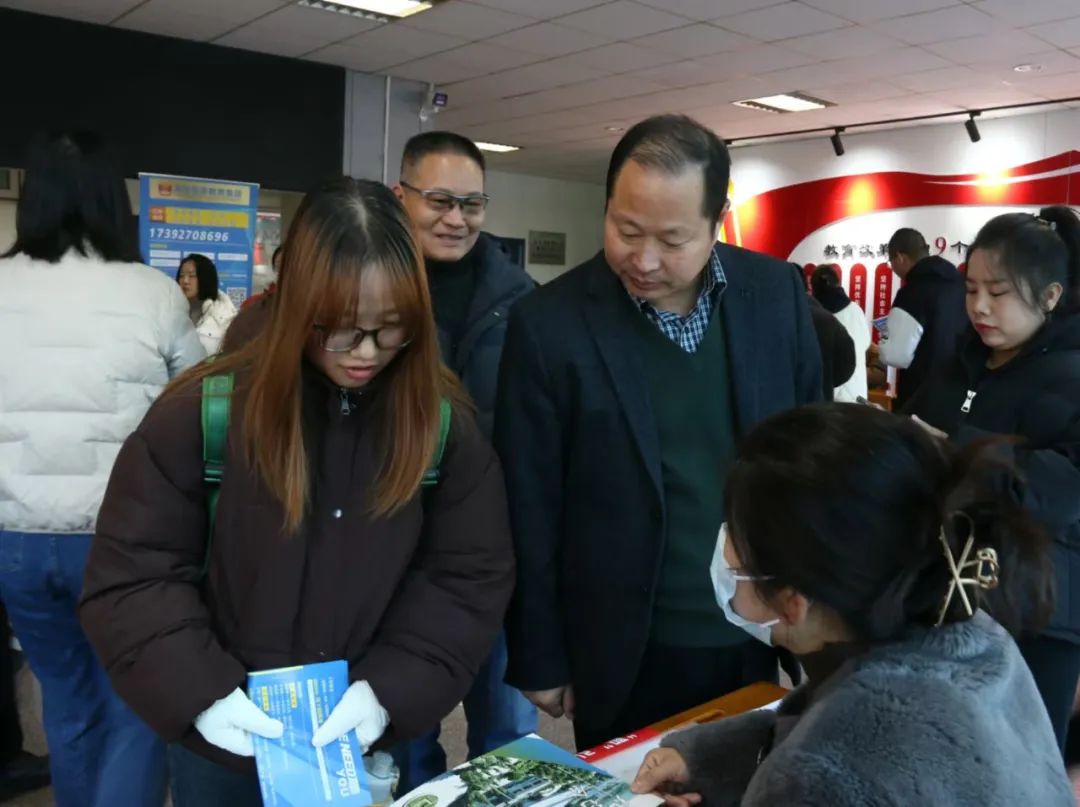汪勇在招聘会现场与毕业生们亲切交谈,询问他们的就业意向和求职进展,勉励他们保持积极心态,勇敢应对就业市场的挑战。