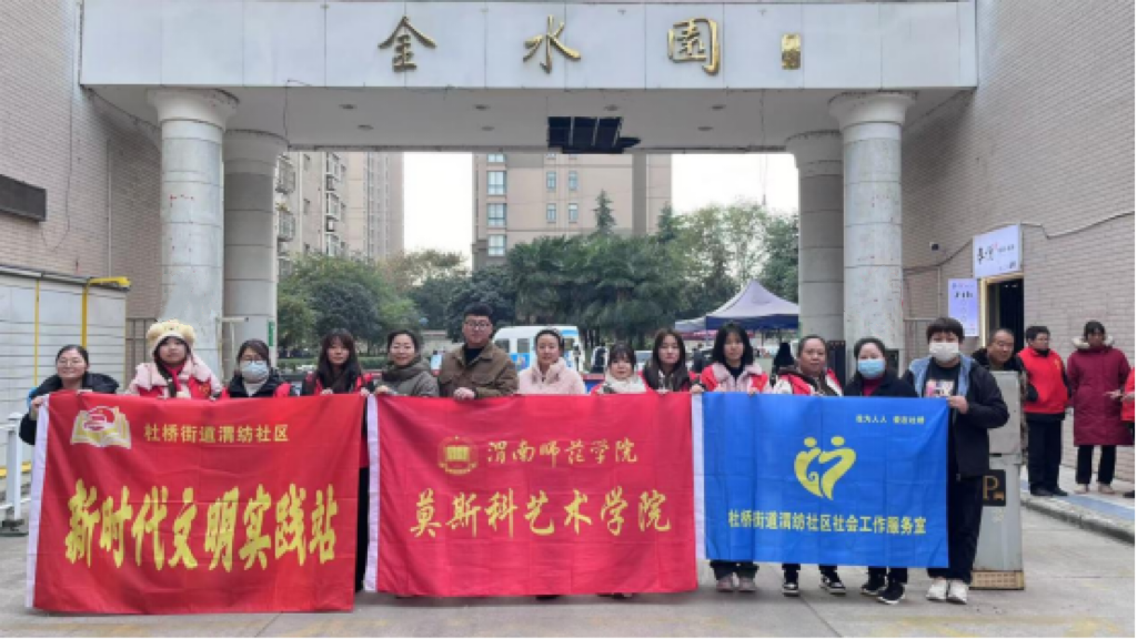 12月4日,莫斯科艺术学院深入渭纺社区参加社区“红色集市”开展特色党团主题活动。学院团委书记段菲、辅导员师艺园、李思凡及部分学生党员、青年团员参加此次活动。