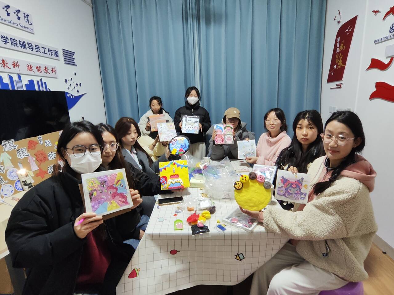 为了增进学生之间的相互了解,更加积极有效地做好学生的心理健康工作,12月11日下午,教育科学学院在一号公寓“一站式”学生社区辅导员工作站开展了“润心竹梦”——塑造情绪,指尖上的多彩心情主题活动。活动中,同学们积极参与数字油画、钻石贴画以及黏土制作等各种DIY创作。活动结束,同学们交流互动,参与活动学到了很多实用的心理调适方法,放松自我的同时,结交很多朋友,减缓了人际关系方面的压力,传递了积极向上的生活态度。