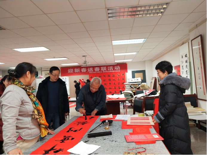 虽是隆冬季节,活动现场却是红红火火,一副副春联、一张张“福”字已经把新年的祝福和春的温暖送至广大教职工心间。大家不仅现场领略了书法家们的潇洒挥毫的风采,欣赏着一副副精美的书法作品,而且也领到了心仪的春联,传统文化氛围满满当当。写的、领的,人人脸上都透着喜气祥和、洋溢着幸福的笑容。(通讯员 张春丽 黄晓琛 审核人 李维喆)
