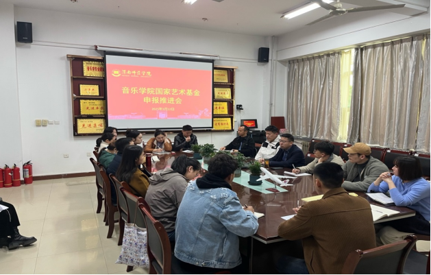 3月12日下午,音乐学院召开国家艺术基金申报推进会,旨在动员全体教师积极参与申报,力争2025年在此项工作中再次突破。会议由院长刘鹏主持,全体博士教师、高级职称教师、系主任及专业负责人参加此次会议。
