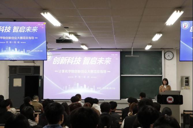 3月13日,计算机学院“星光亮计 芯火相传”育人工作室举办“创新科技,智启未来”学生竞赛指导活动。活动特邀经管学院韩宏刚副教授参加,学院学工办主任李雷玮、育人工作室“业”以励“计”工作组团队教师王咿卜及120余名学生参加活动。学院党总支副书记、育人工作室负责人张俊娜主持活动。