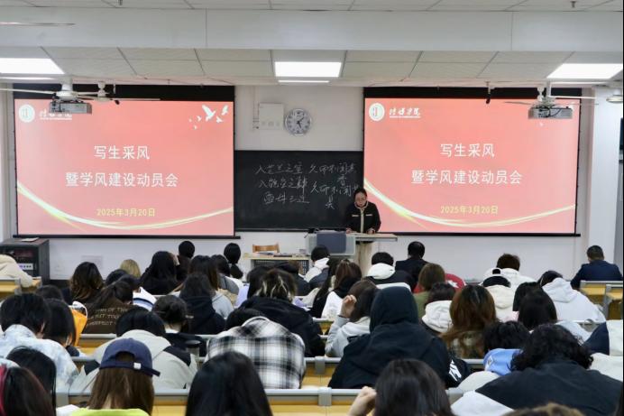 3月20日下午,传媒学院召开写生采风暨学风建设动员会。学院党总支书记田康顺,院长曹熙斌,各专业负责人,任课教师及2024级全体学生参会,会议由副院长侯君奕主持。
