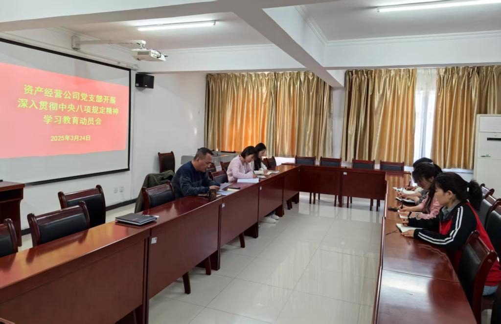 3月24日下午,资产经营公司党支部召开深入贯彻中央八项规定精神学习教育动员部署工作会,支部全体党员参加会议,会议由党支部书记郭音主持。