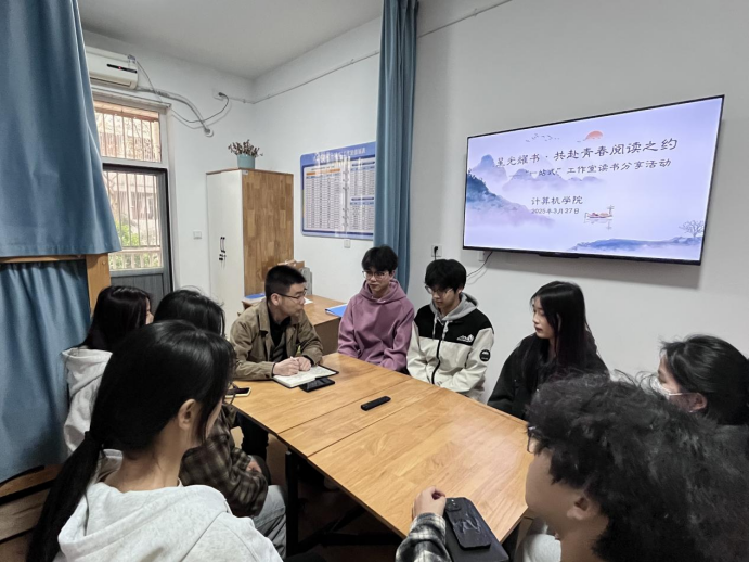 3月27日下午,计算机学院在学院“一站式”社区举行“星光耀书·共赴青春阅读之约”主题读书分享活动,学工办主任李雷玮,辅导员范耿瑞及10余名学生参加分享会。
