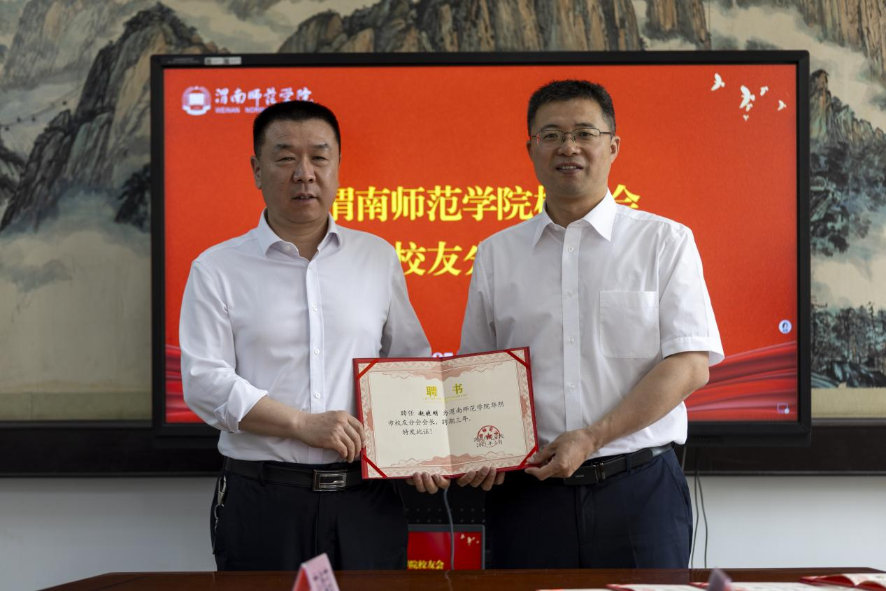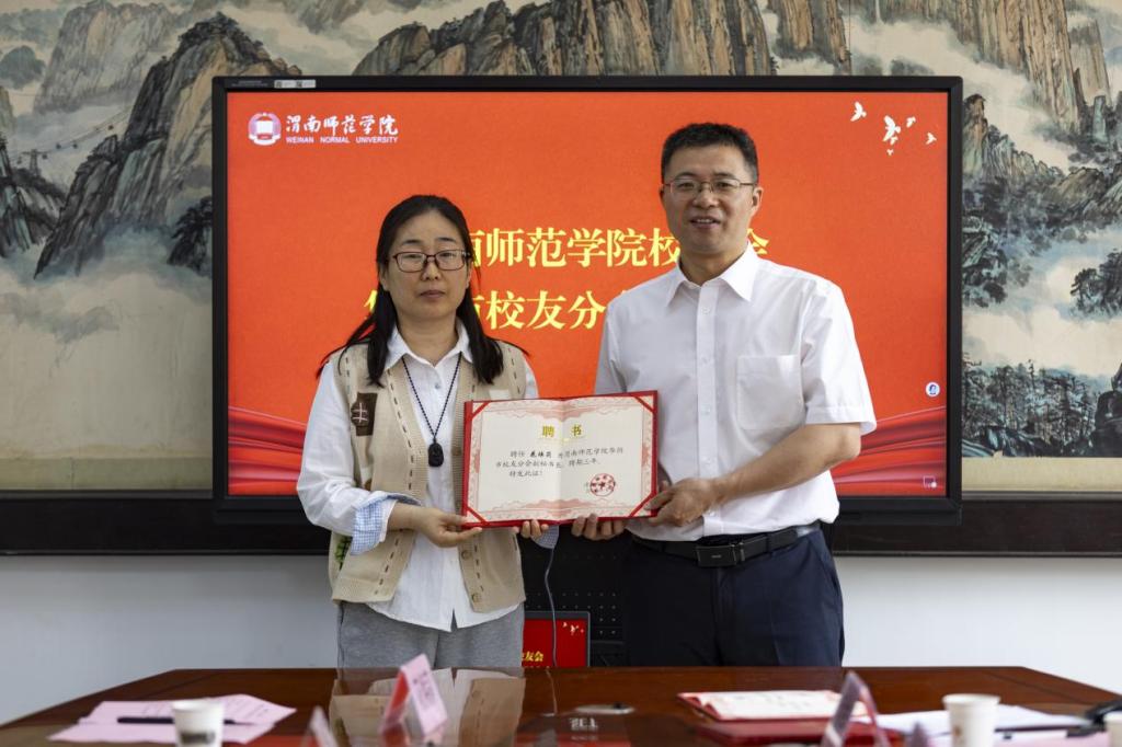 会上,与会人员观看了学校的官方宣传片,共同回顾了学校办校至今在教育教学、人才培养、科学研究、校地合作、社会服务等方面取得的优异成绩。第一届华阴市校友分会秘书长牛喜学回顾并全面总结了第一届校友分会的主要工作并介绍了此次换届工作筹备情况。张俊娜宣读了《欧宝娱乐官方app校友总会关于华阴市校友分会第二届组织机构人员组成的批复》,杨方琦为华阴市校友分会第二届组织机构人员颁发聘书。