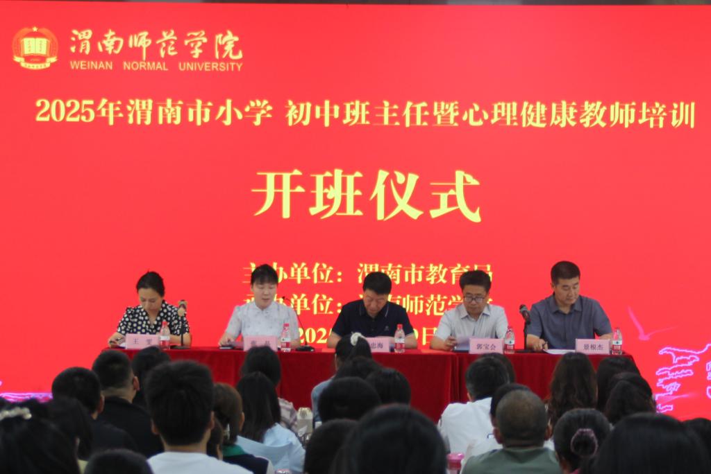 5月19日上午,2025年渭南市小学、初中班主任暨心理健康教师培训在我校顺利开班,全市160名基础教育工作者将参加为期5天的专业研修。市政府副总督学李忠海、市教育局教师科科长王雯、该项目首席专家郭宝会教授、我校继续教育学院院长景根杰出席并讲话。继续教育学院直属党支部书记张晶主持开班仪式。