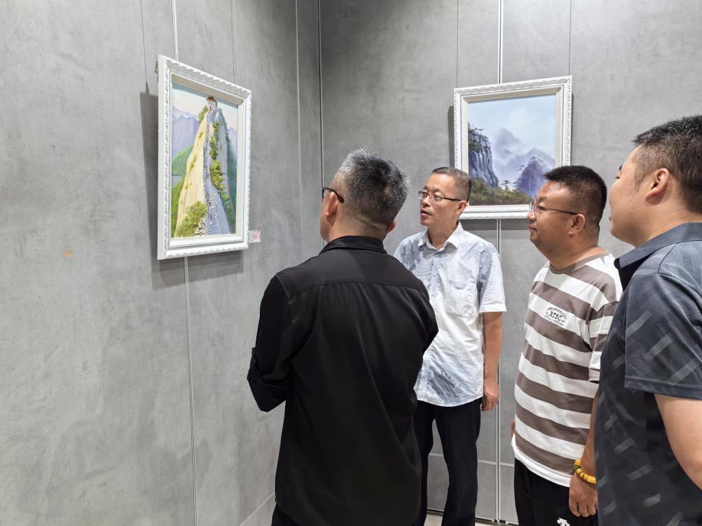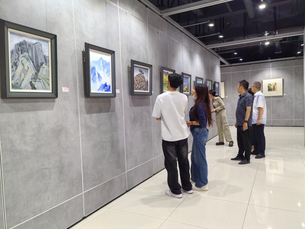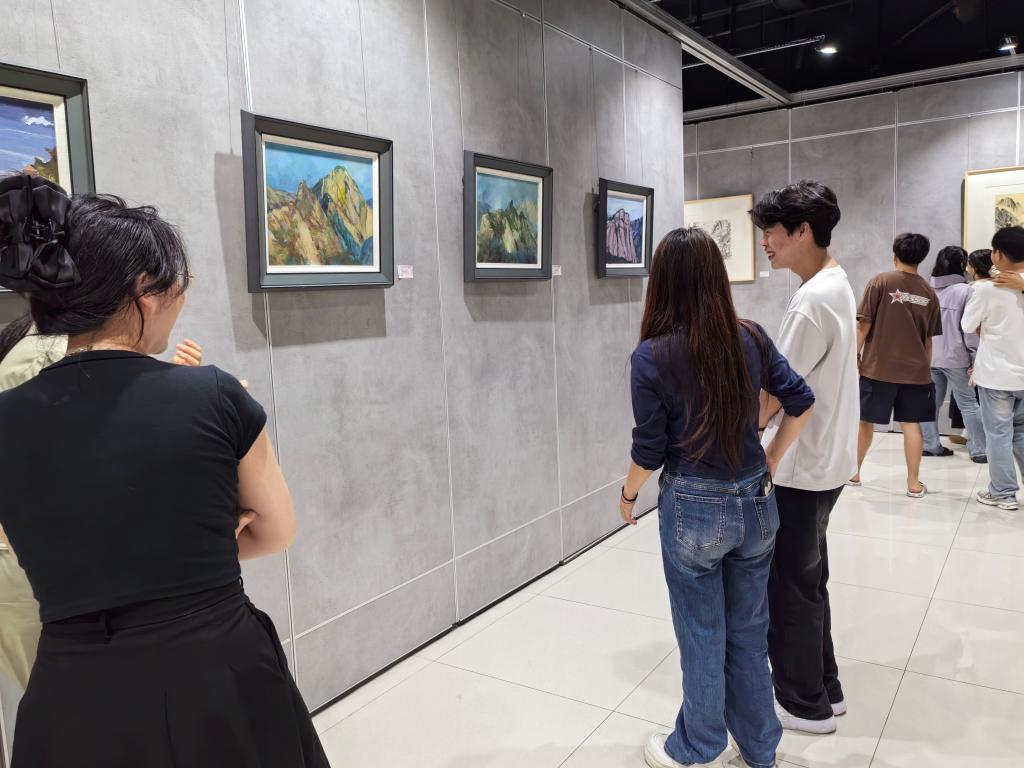 展览现场,怀德美术馆化身为沉浸式美育课堂,百幅作品构筑起跨越时空的文化对话长廊。国画作品以泼墨重彩再现华岳烟云的雄浑气韵,通过自然山水与历史典故的意象叠合,展现出“山岳即史书”的文化厚度;油画作品则以炽烈色彩重构红色记忆,在光影律动中铺陈革命岁月的精神图谱。特邀作品更以当代艺术语汇实现传统文化精神的创造性转化,形成传统技法与现代审美的交响共鸣。观展师生在国画的苍劲笔触中感受山河魂魄,于油画的斑斓色彩里触摸历史温度。同学们表示,此次展览作品既深植华山文化的厚重底蕴,又饱含未来憧憬的灵动畅想,艺术语言相较于文字更具直击人心的感染力,以视觉张力诠释着历史积淀与时代脉搏的和谐共鸣。