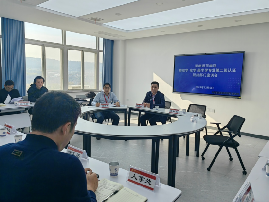 校长张守华代表学校对各位专家、领导的到来表示热烈欢迎,对长期以来关心支持学校事业发展的各位专家和领导表示衷心感谢。简要介绍了我校的办学历史与现状。他指出,此次专业认证是对我校师范类专业办学成效的“深度检阅”与“把脉问诊”,对促进我校师范类专业发展与高水平大学建设有重要意义。真诚期望通过各位专家的权威指导、精准把脉,帮助学校从更高站位、更新理念、更深层面厘清教师教育的短板和不足,找准努力方向,进一步擦亮师范教育的办学底色。并向专家组汇报了学校教师教育工作基本情况。专家组围绕学校层面考查重点进行了问题循证,相关部门负责人作了回答。
