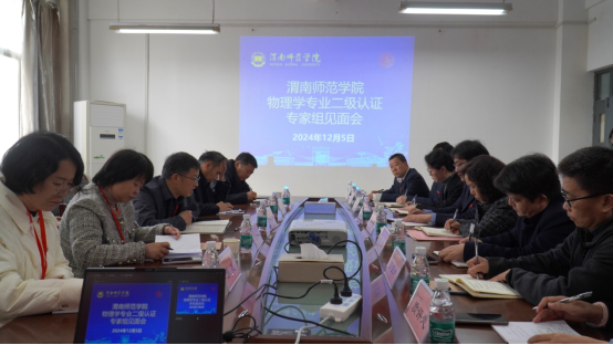 12月4日至7日,以湖南师范大学黎大志教授为联合专家组组长及教育技术学专业专家组组长、安徽师范大学许新胜教授为物理学专业专家组组长、河南师范大学张顺利教授为化学专业专家组组长、西南大学刘承宇教授为英语专业专家组组长、华中师范大学王文新教授为美术学专业专家组组长的教育部普通高校师范专业第二级认证专家组一行25人进驻我校,对我校教育技术学、物理学、化学、英语、美术学5个专业开展了师范类专业第二级认证现场考查。