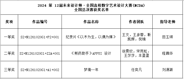 8月26日,第12届未来设计师·全国高校数字艺术设计大赛全国赛奖项揭晓。我校传媒学院的师生们获得一等奖、二等奖、三等奖各一项的成绩。