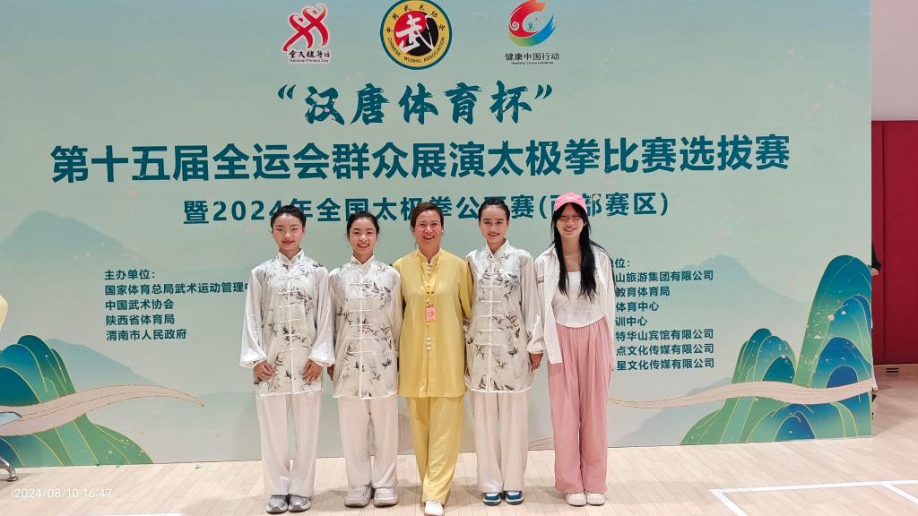 日前,“汉唐体育杯” 第十五届全运会群众展演太极拳比赛选拔赛暨 2024 年全国太极拳公开赛(西部赛区)在华阴市文化体育运动中心圆满落幕。在学校领导的高度重视和大力支持下,体育学院精心组织学生参加本次比赛,在赛场上展现出了非凡的风采。